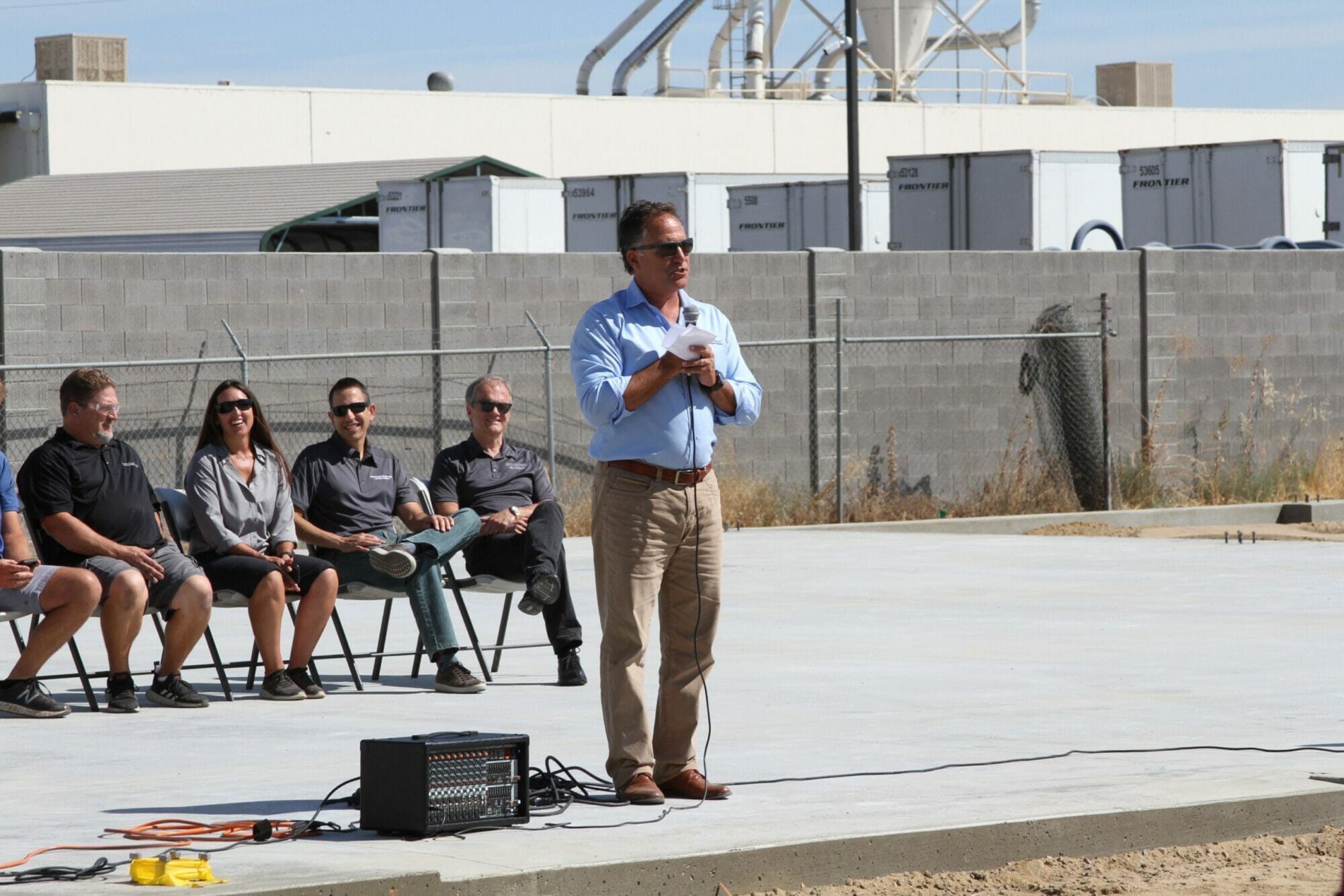 A man is standing in front of a group of people at Supreme Boats.